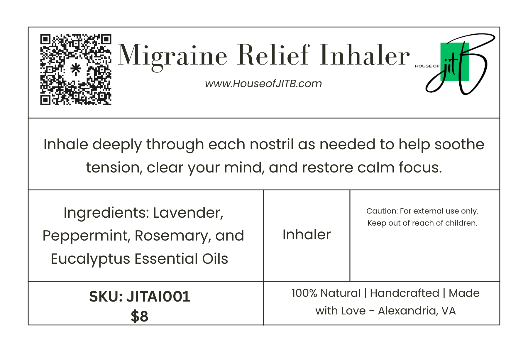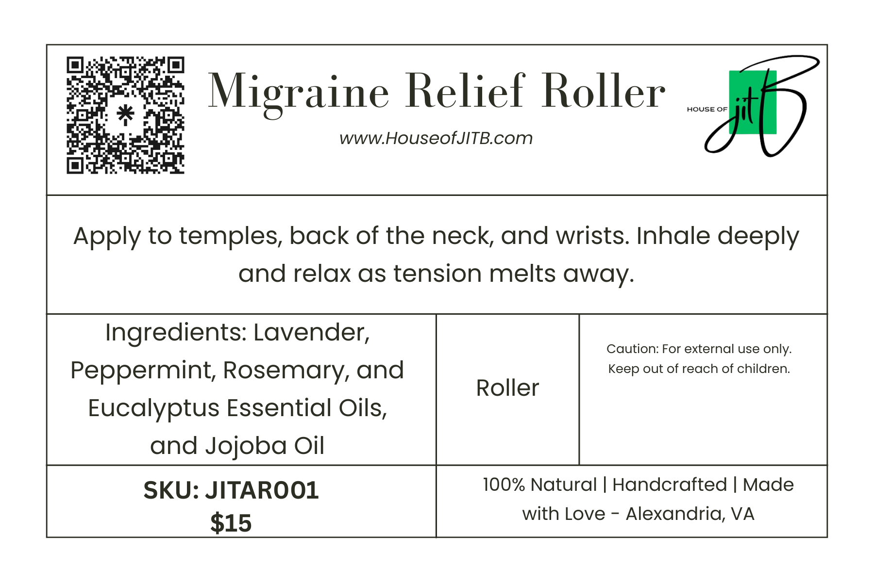Ingredients: Peppermint • Eucalyptus • Lavender • Rosemary • Jojoba Oil