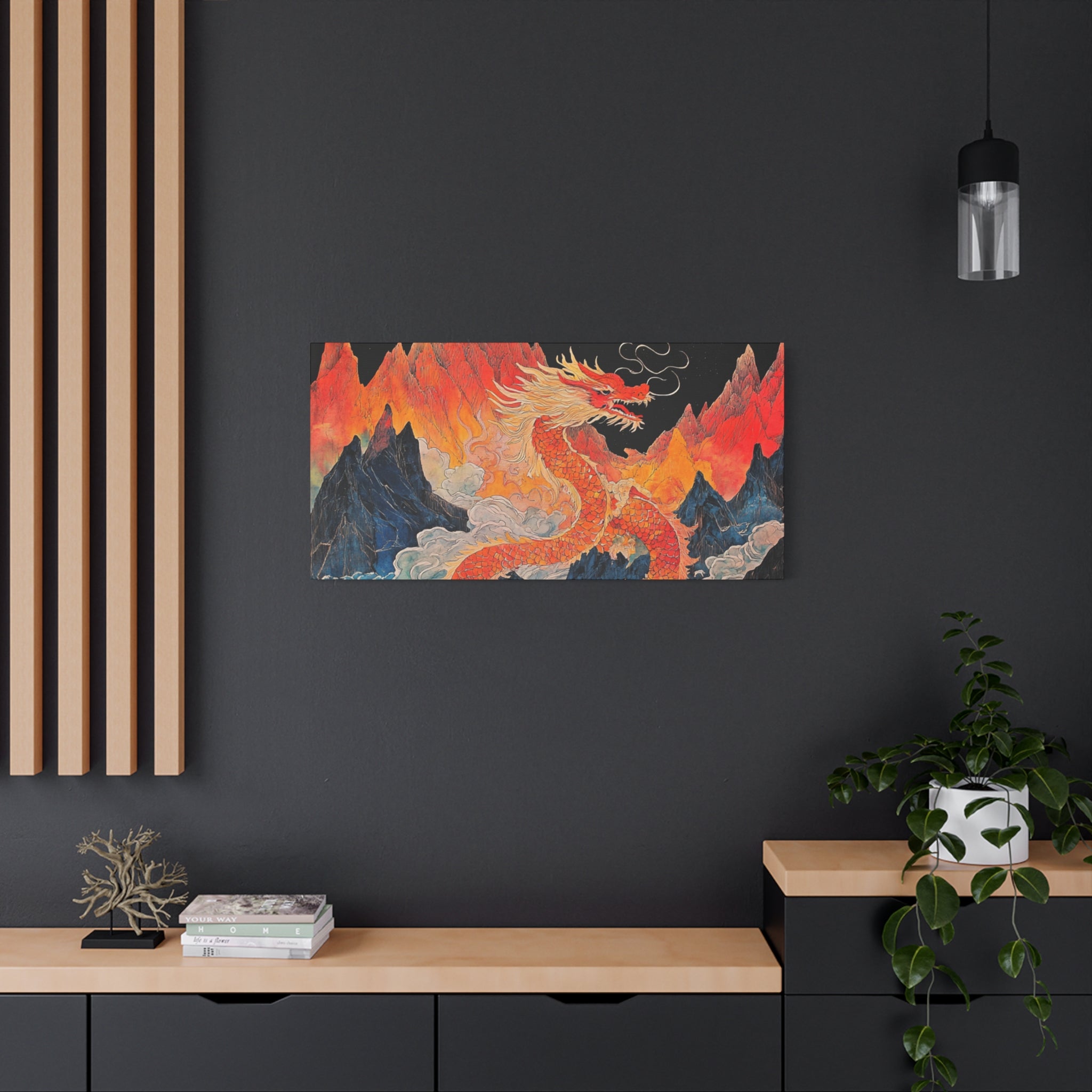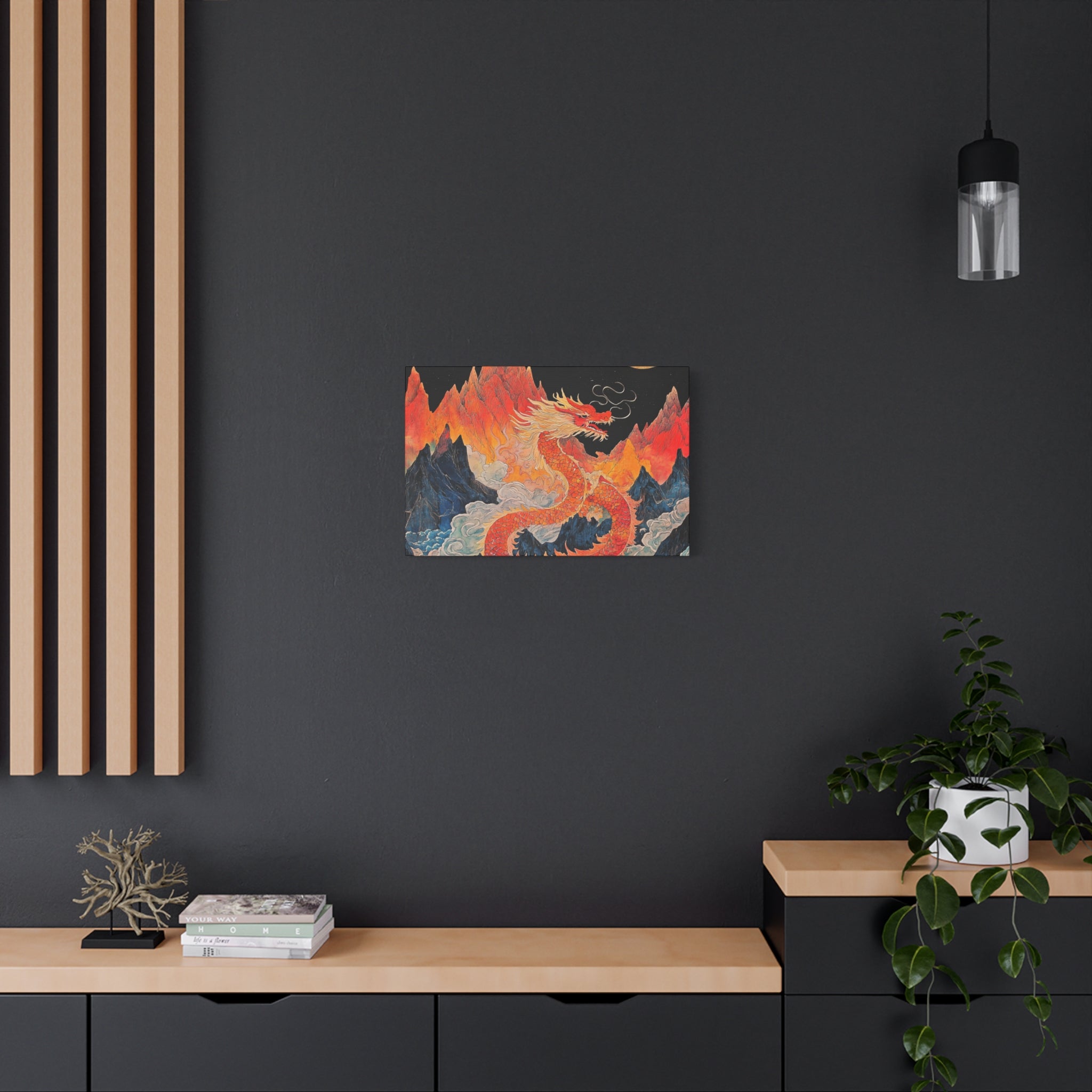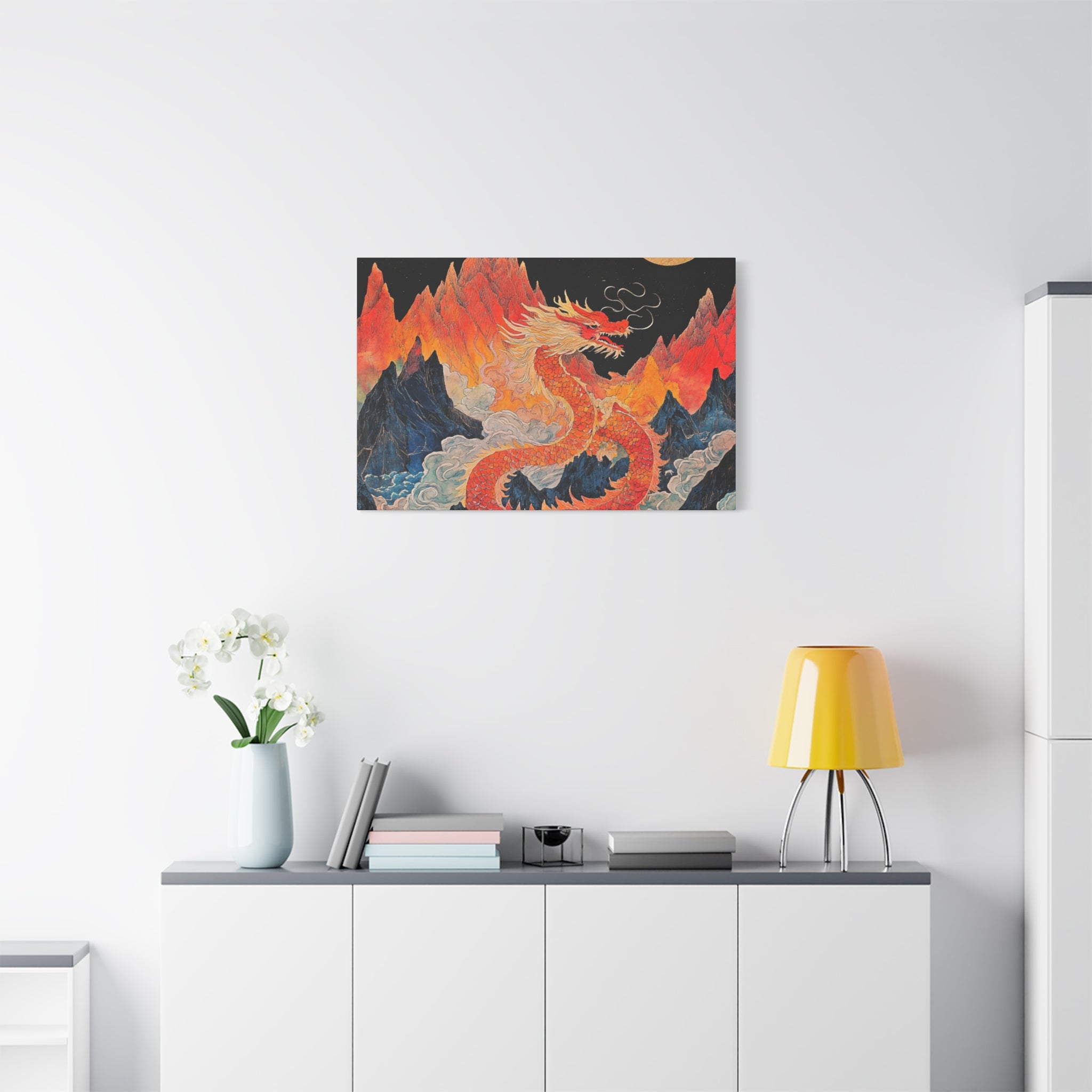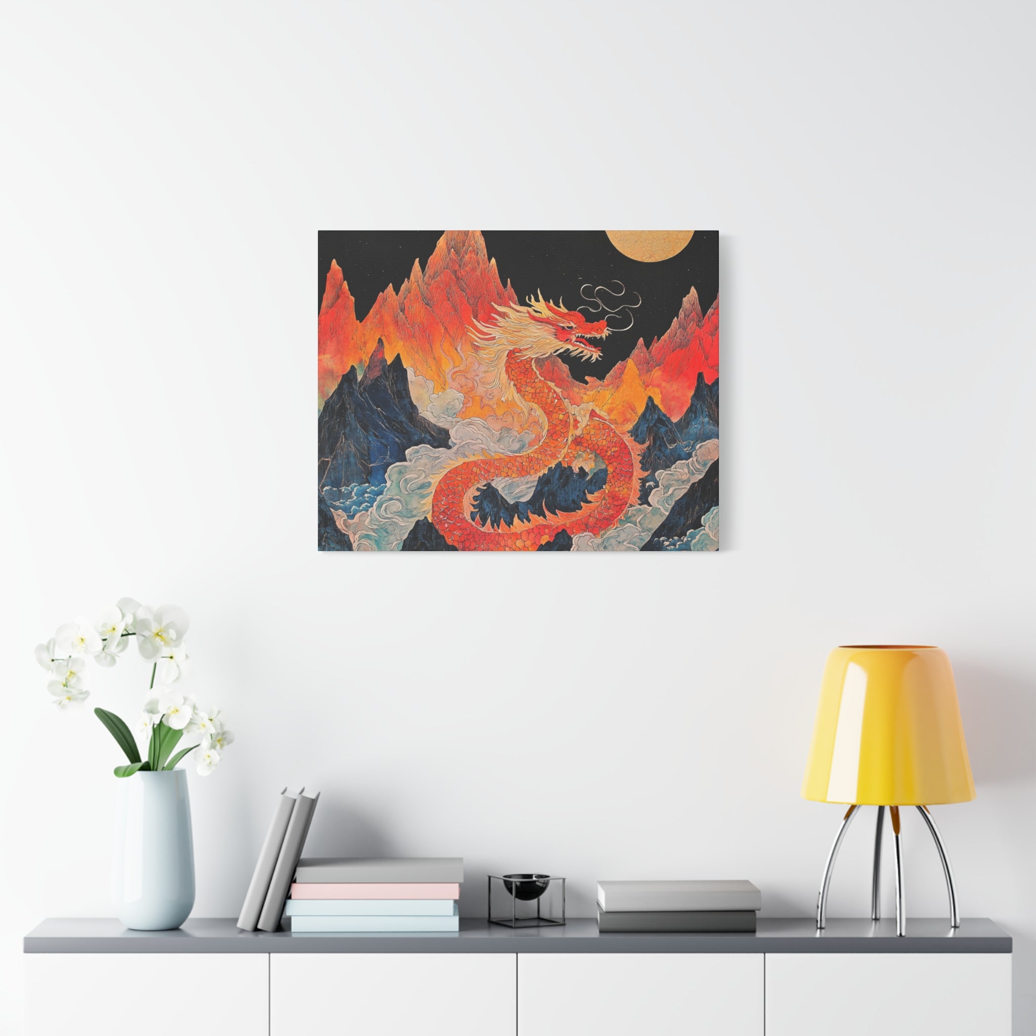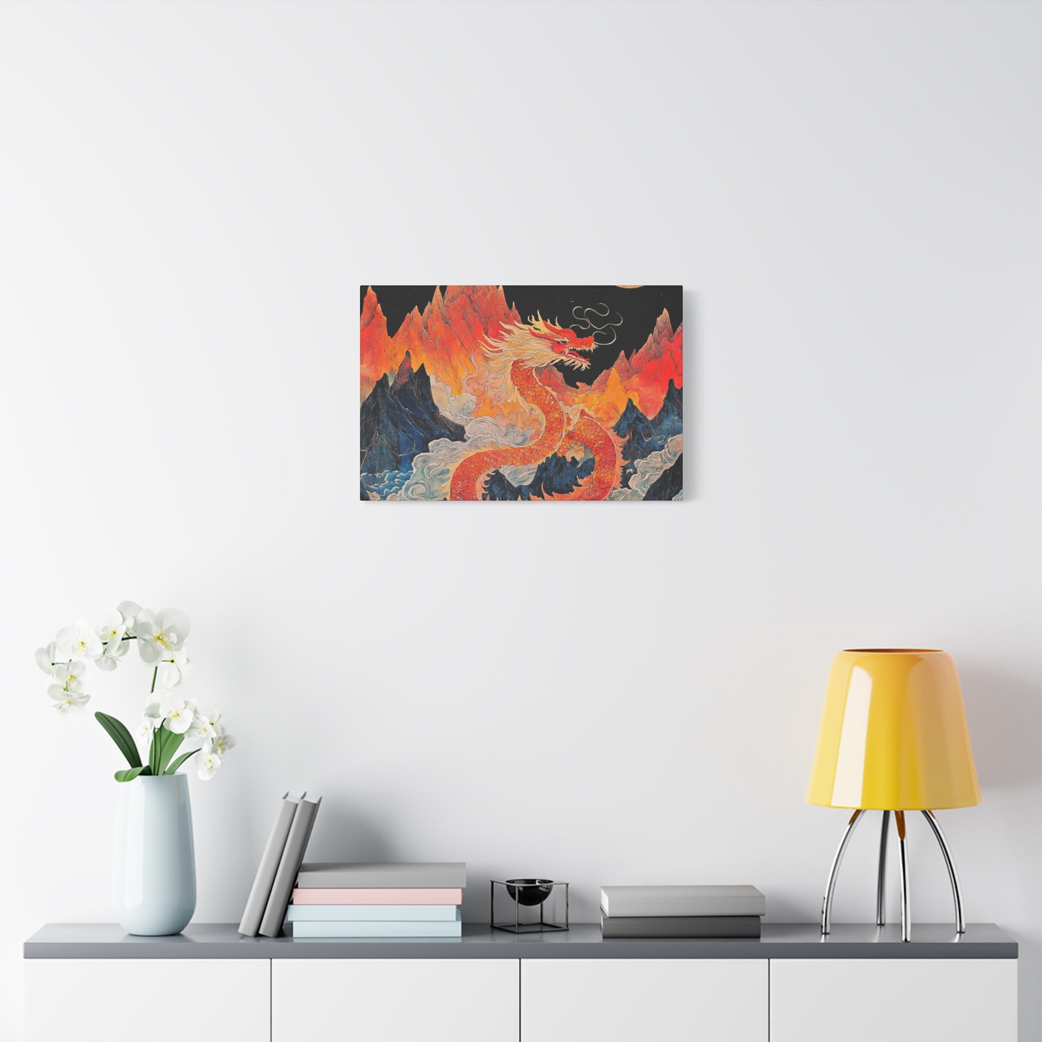 Transform your space with this stunning canvas art piece. This Matte Canvas captures the vibrant essence of a mythical dragon amidst a dramatic landscape. Perfect for adding a touch of bold flair and creativity to any room, this artwork invites awe and inspiration. Ideal for art enthusiasts, dragon lovers, and those who appreciate unique home decor, it's a fantastic choice for gifting during housewarmings, birthdays, or just because. Celebrate special occasions like Lunar New Year or meaningful milestones with this captivating piece that fits seamlessly into both modern and traditional interiors.