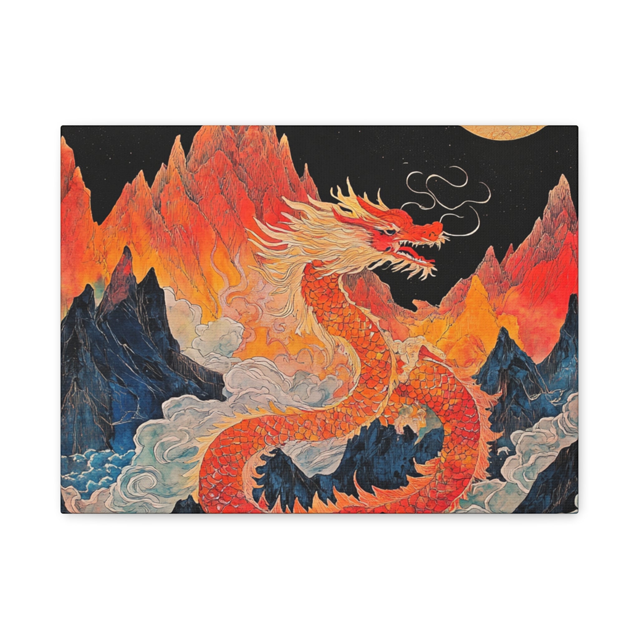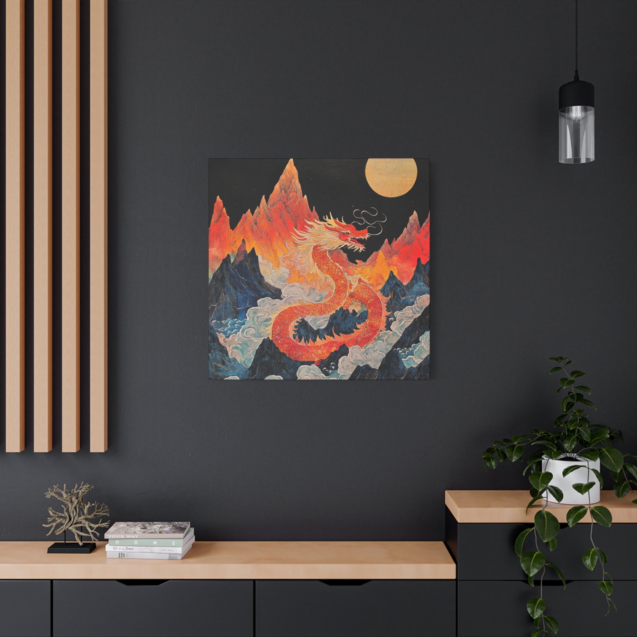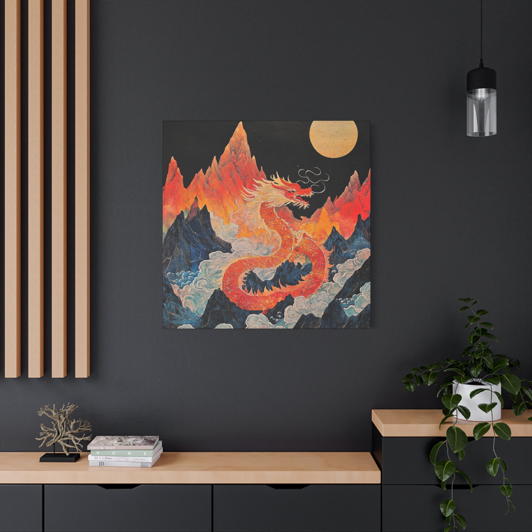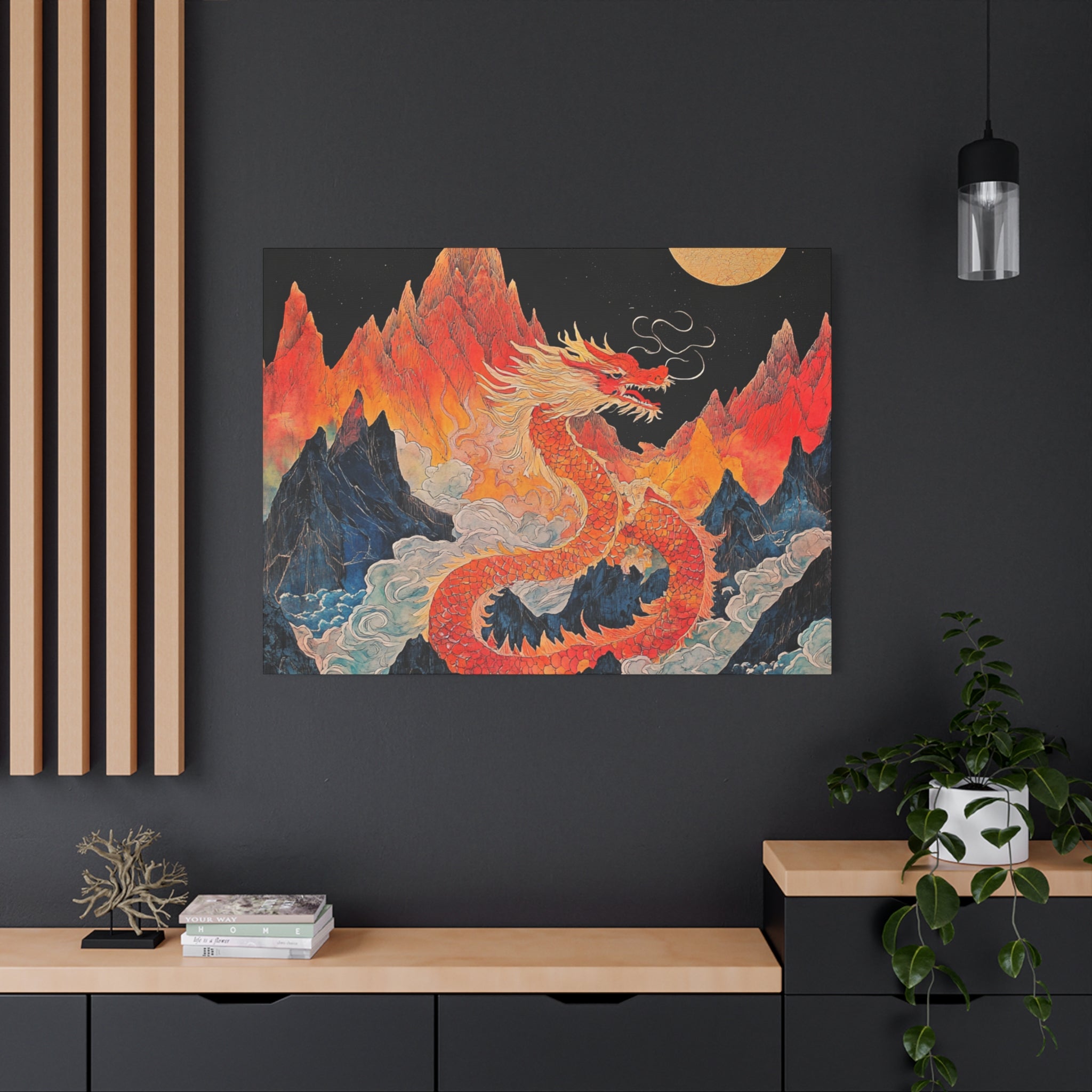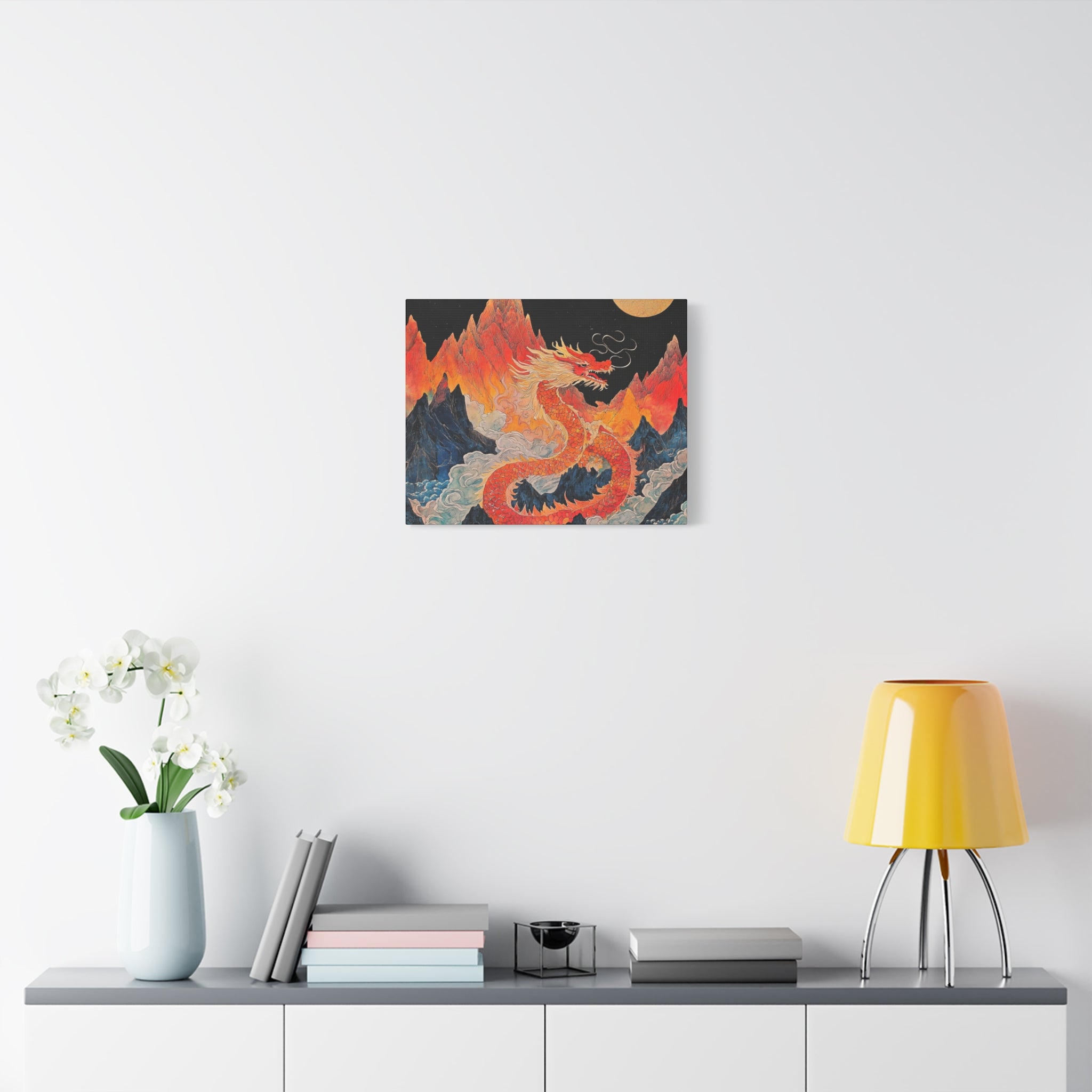 Transform your space with this stunning canvas art piece. This Matte Canvas captures the vibrant essence of a mythical dragon amidst a dramatic landscape. Perfect for adding a touch of bold flair and creativity to any room, this artwork invites awe and inspiration. Ideal for art enthusiasts, dragon lovers, and those who appreciate unique home decor, it's a fantastic choice for gifting during housewarmings, birthdays, or just because. Celebrate special occasions like Lunar New Year or meaningful milestones with this captivating piece that fits seamlessly into both modern and traditional interiors.