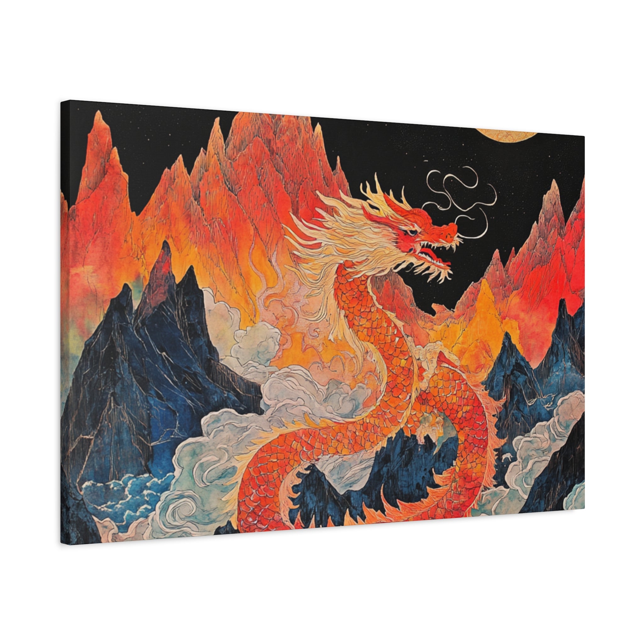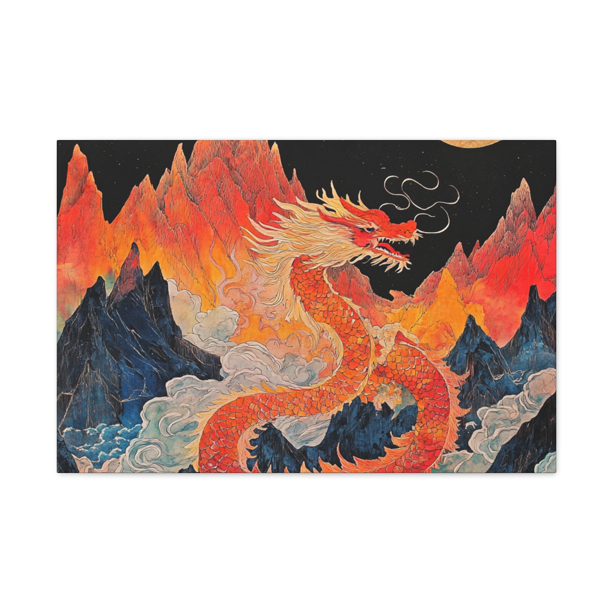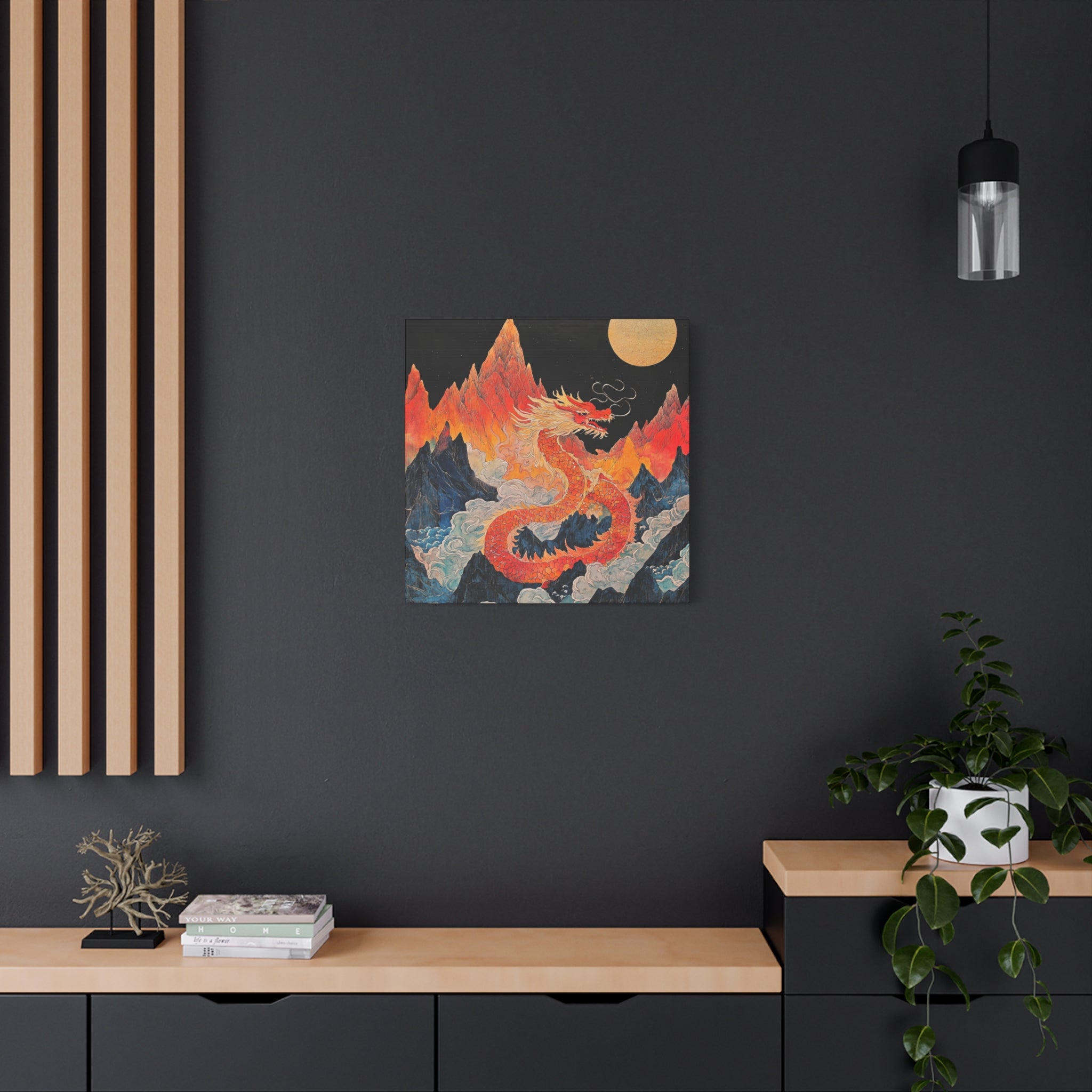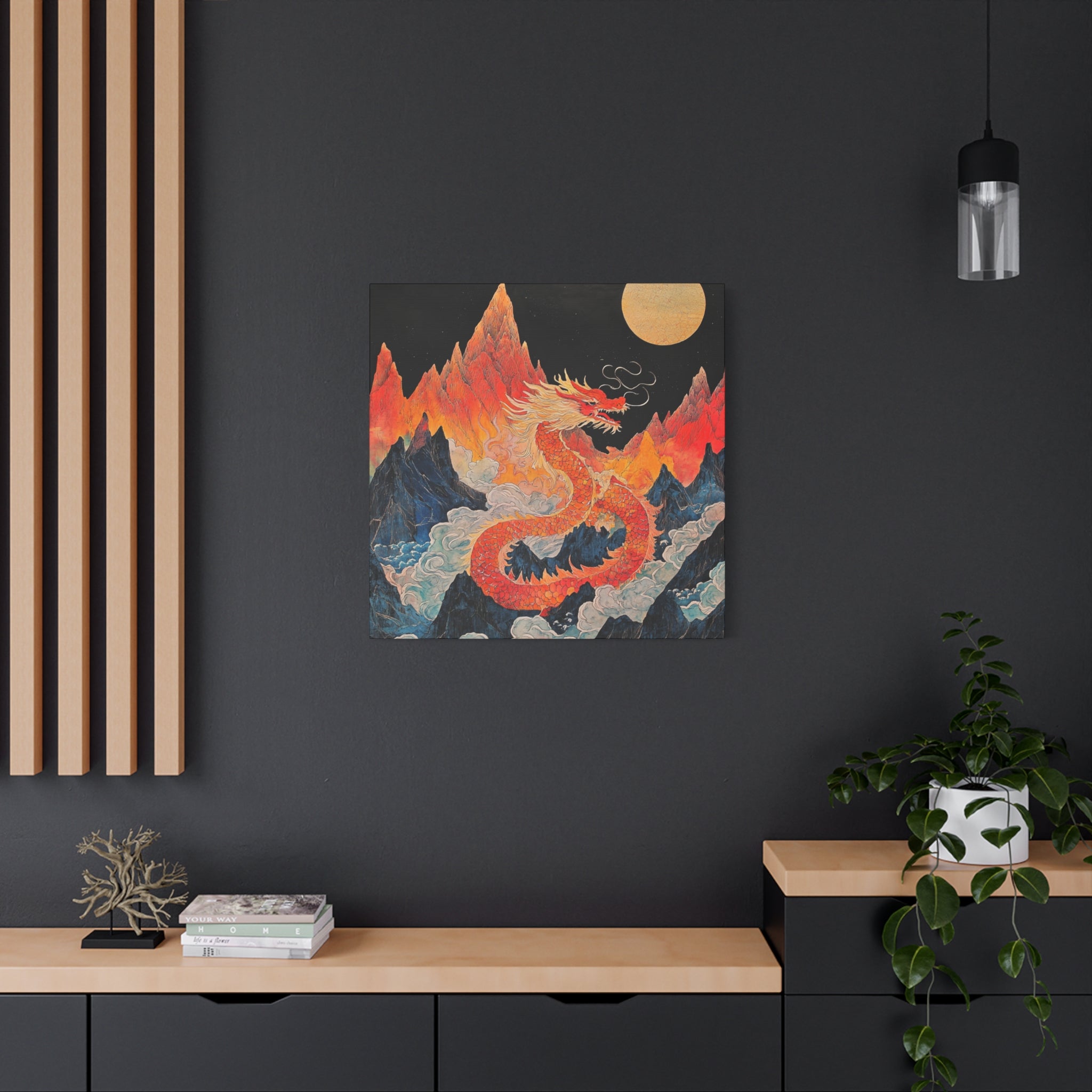 Transform your space with this stunning canvas art piece. This Matte Canvas captures the vibrant essence of a mythical dragon amidst a dramatic landscape. Perfect for adding a touch of bold flair and creativity to any room, this artwork invites awe and inspiration. Ideal for art enthusiasts, dragon lovers, and those who appreciate unique home decor, it's a fantastic choice for gifting during housewarmings, birthdays, or just because. Celebrate special occasions like Lunar New Year or meaningful milestones with this captivating piece that fits seamlessly into both modern and traditional interiors.