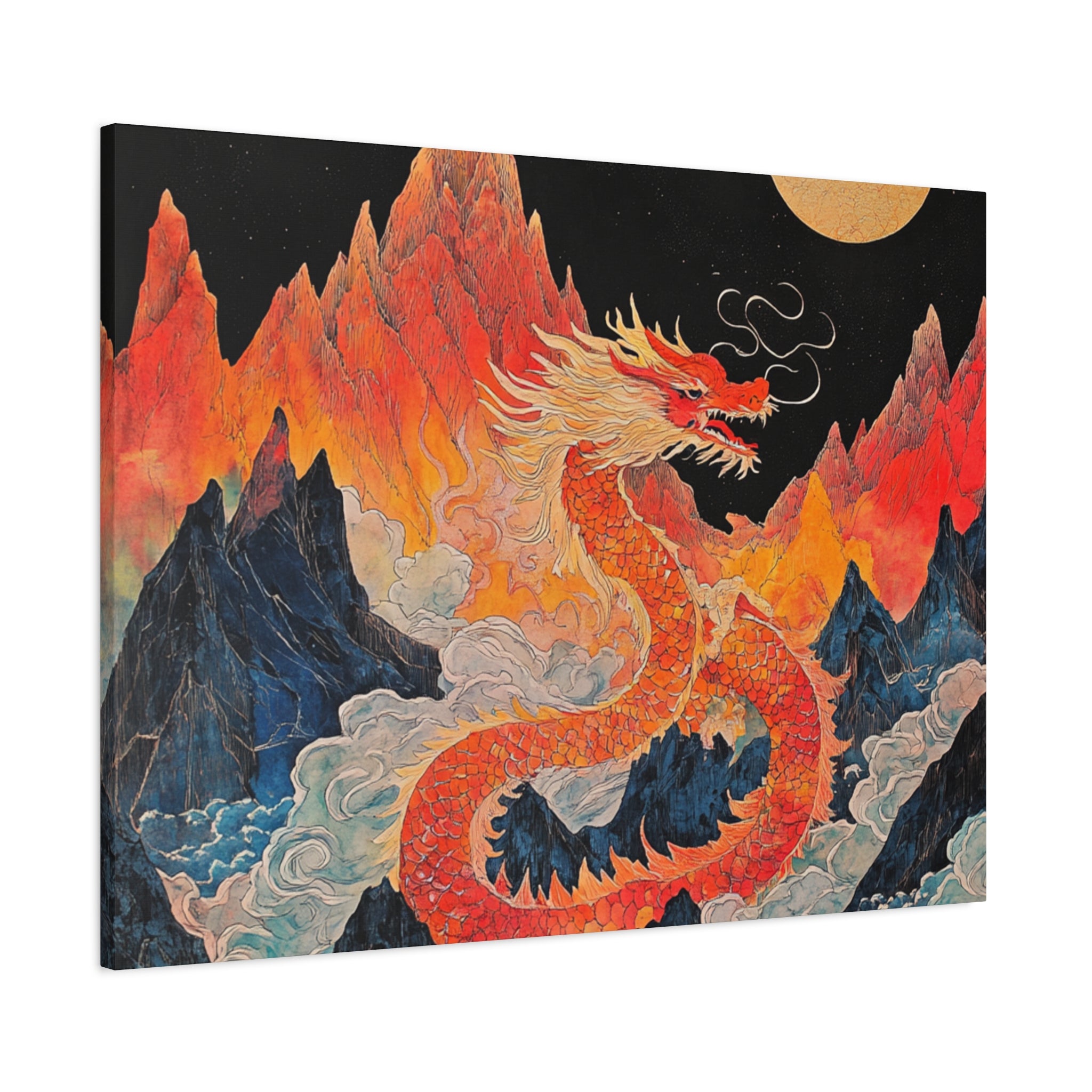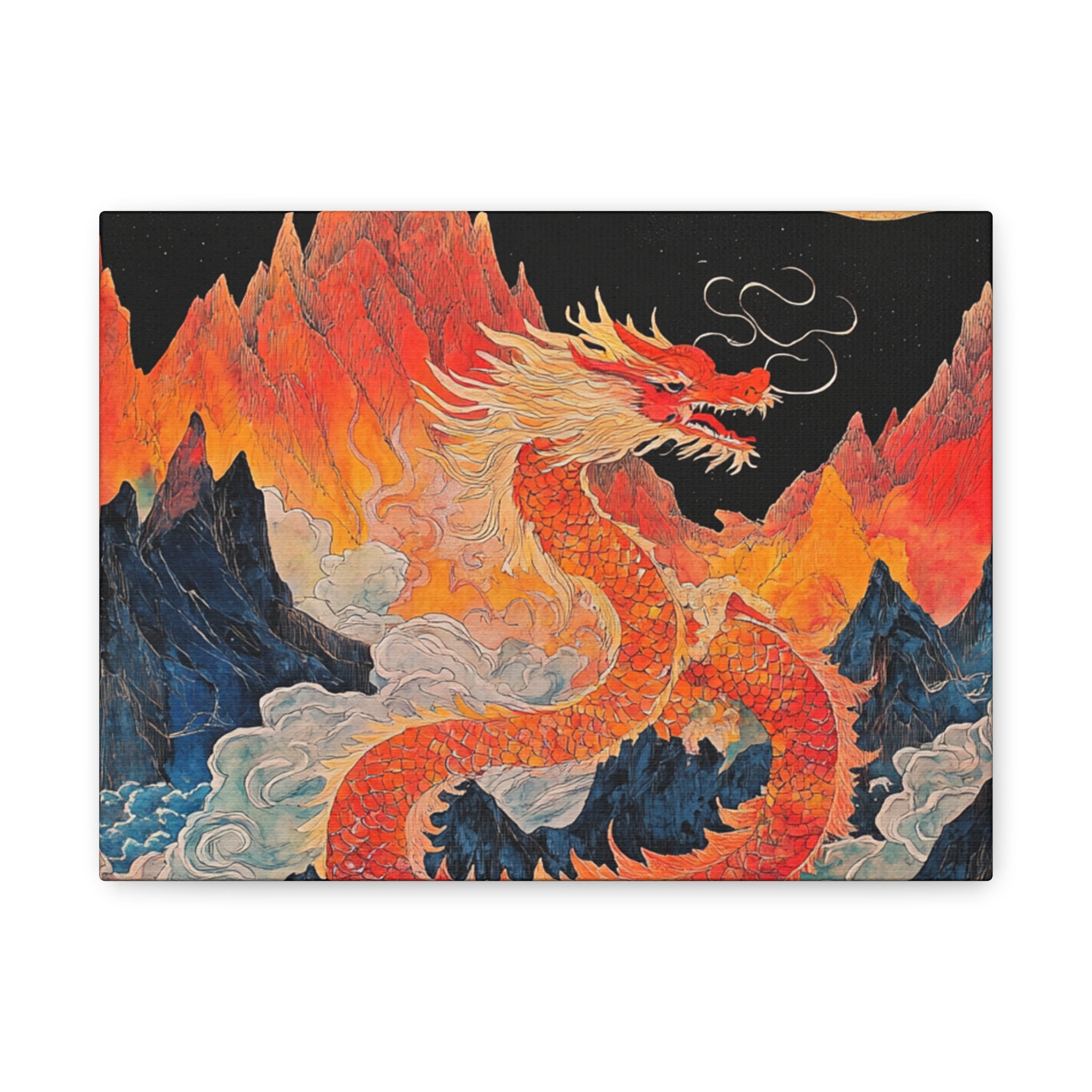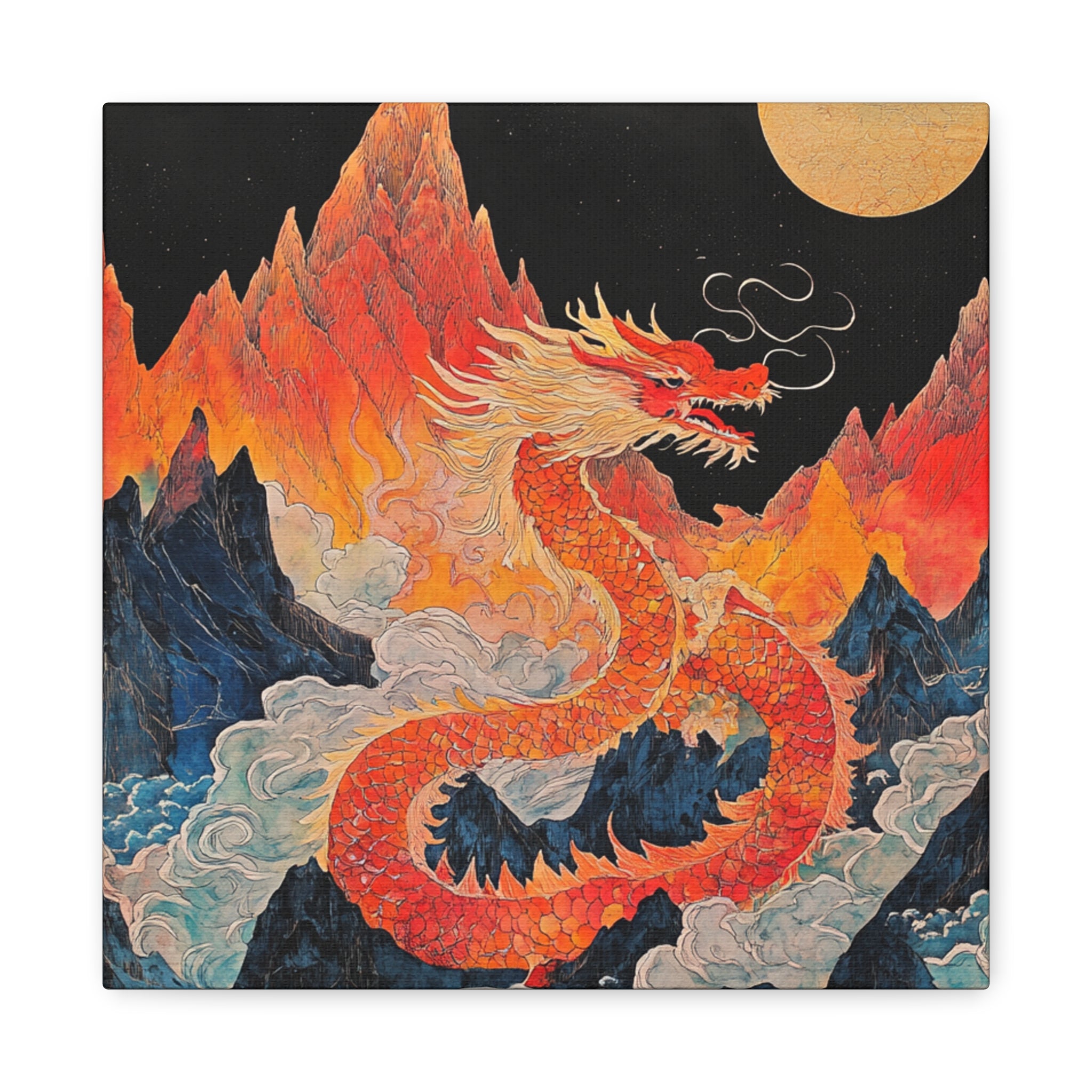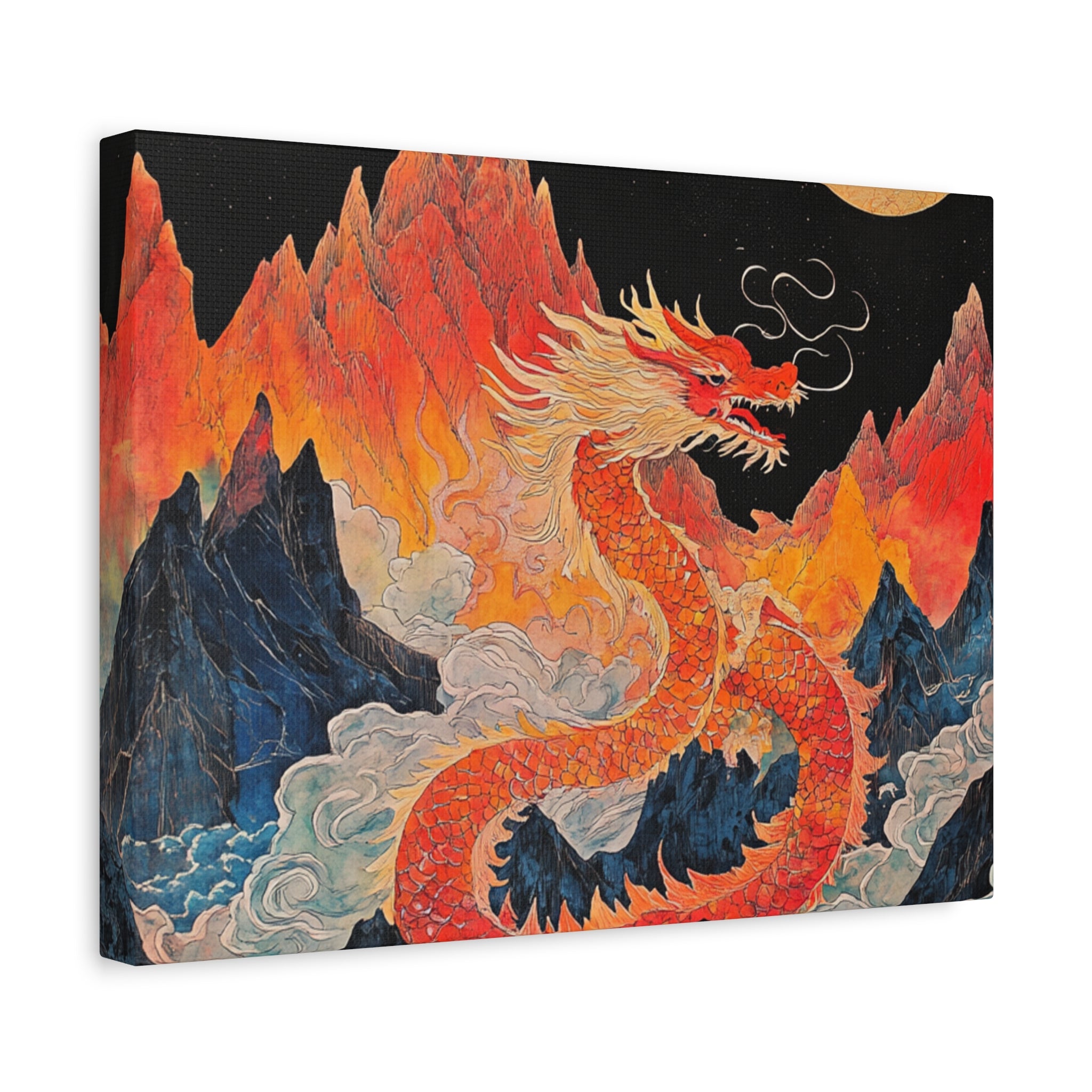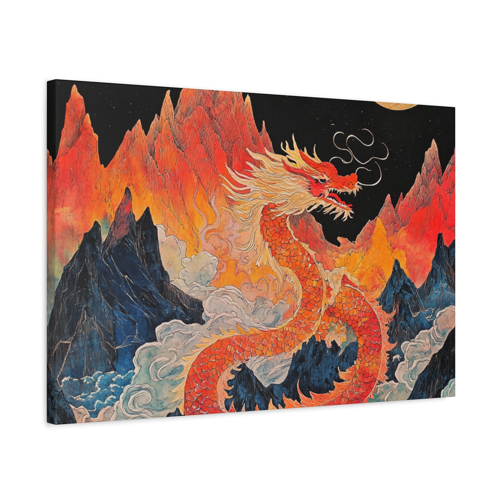 Transform your space with this stunning canvas art piece. This Matte Canvas captures the vibrant essence of a mythical dragon amidst a dramatic landscape. Perfect for adding a touch of bold flair and creativity to any room, this artwork invites awe and inspiration. Ideal for art enthusiasts, dragon lovers, and those who appreciate unique home decor, it's a fantastic choice for gifting during housewarmings, birthdays, or just because. Celebrate special occasions like Lunar New Year or meaningful milestones with this captivating piece that fits seamlessly into both modern and traditional interiors.