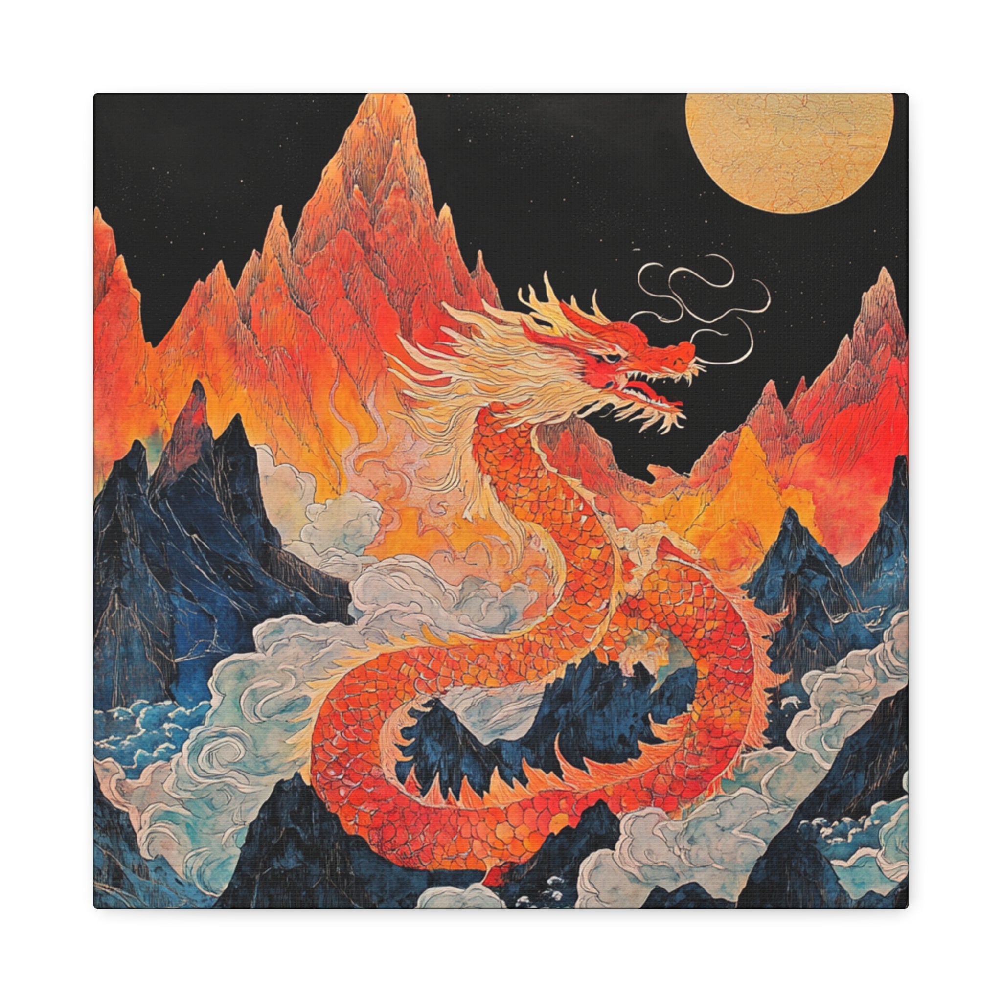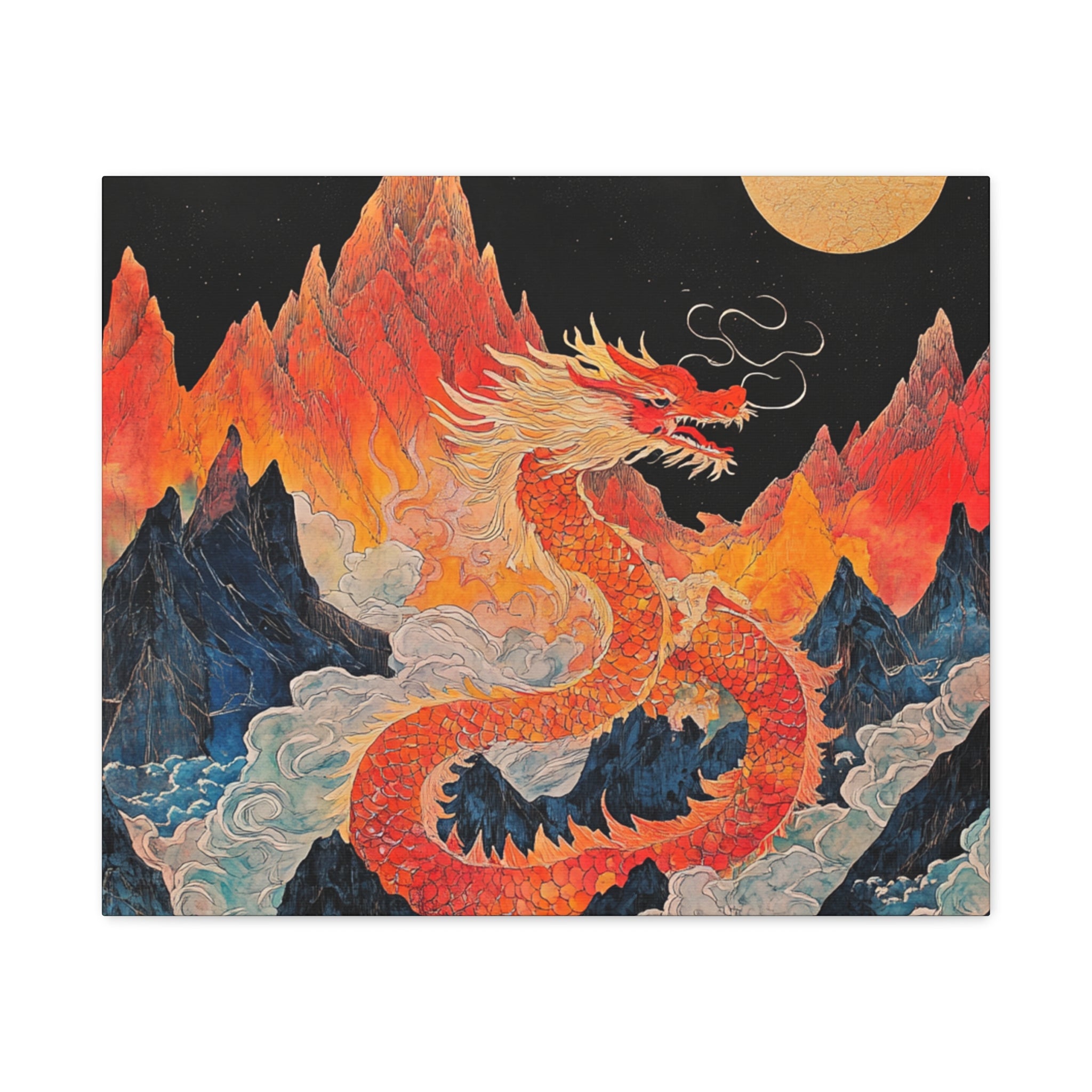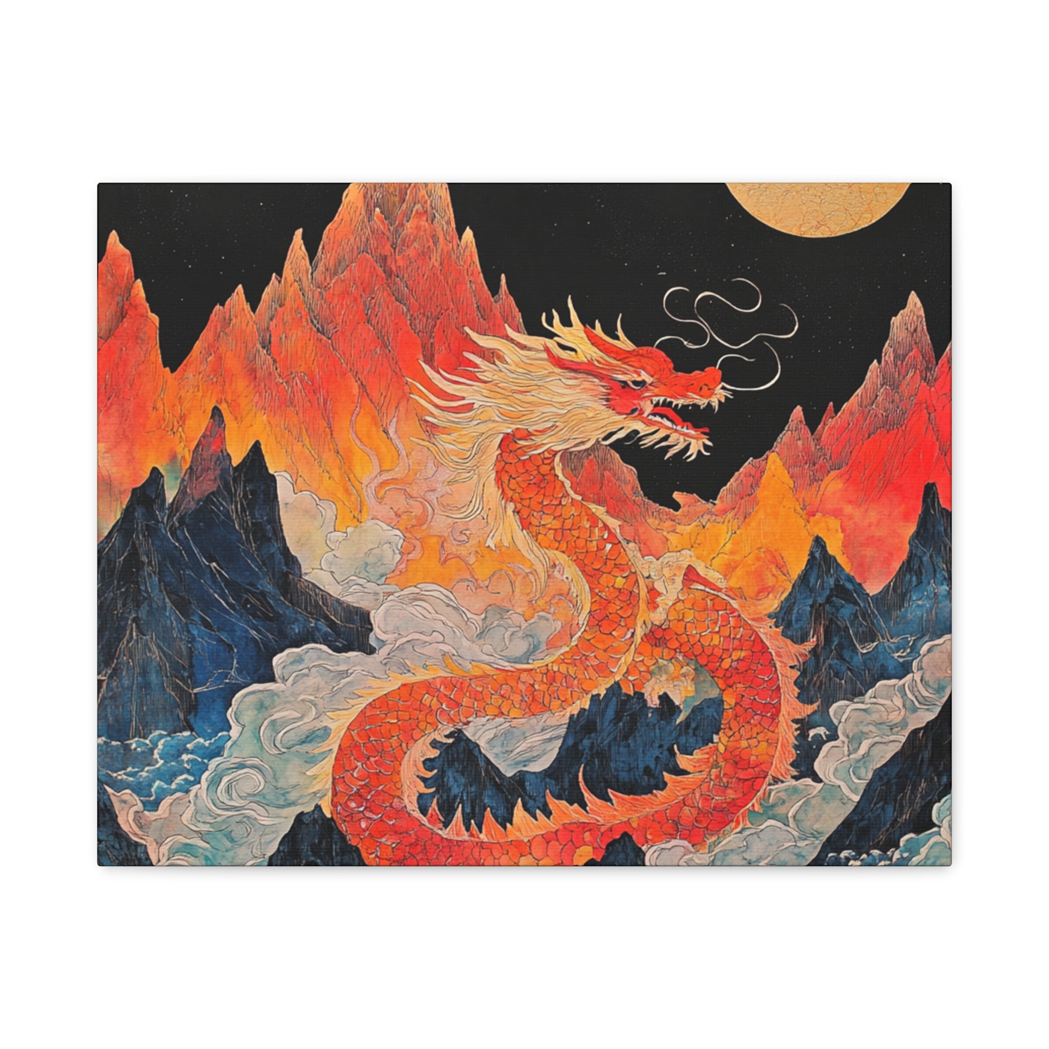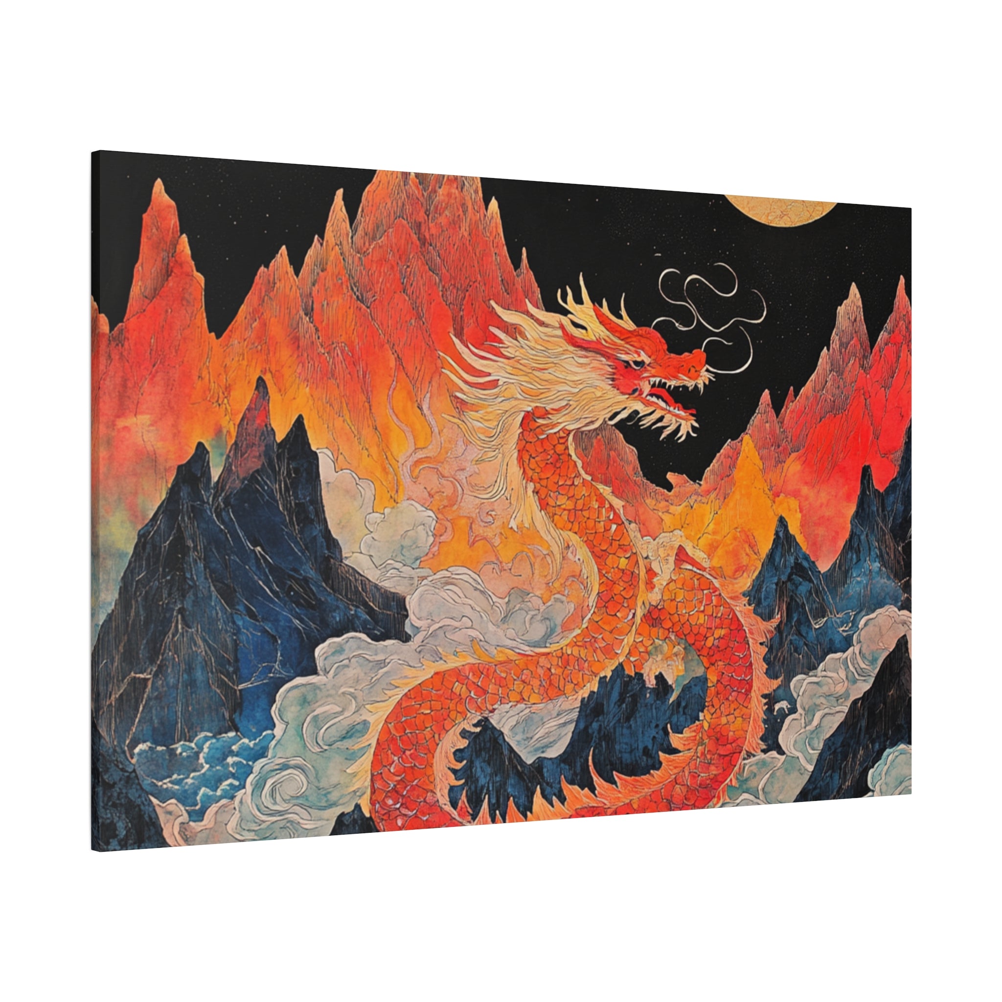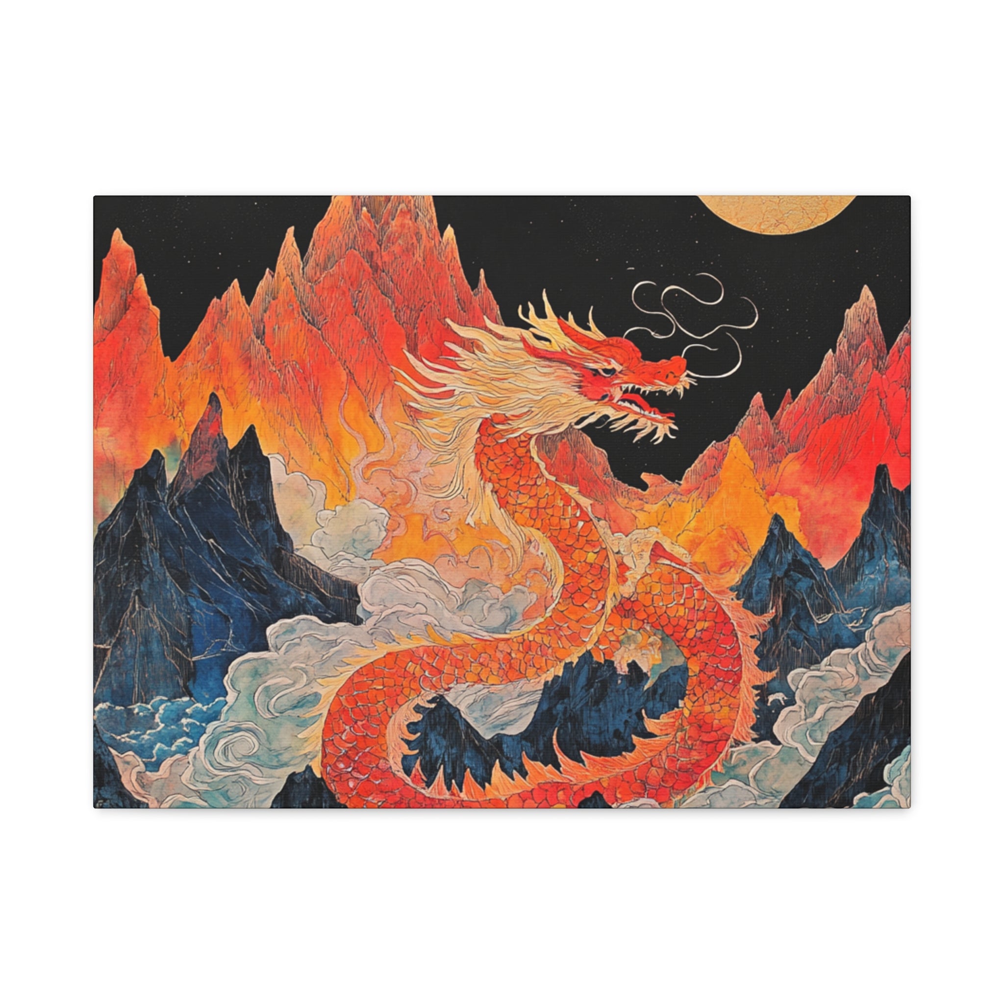 Transform your space with this stunning canvas art piece. This Matte Canvas captures the vibrant essence of a mythical dragon amidst a dramatic landscape. Perfect for adding a touch of bold flair and creativity to any room, this artwork invites awe and inspiration. Ideal for art enthusiasts, dragon lovers, and those who appreciate unique home decor, it's a fantastic choice for gifting during housewarmings, birthdays, or just because. Celebrate special occasions like Lunar New Year or meaningful milestones with this captivating piece that fits seamlessly into both modern and traditional interiors.