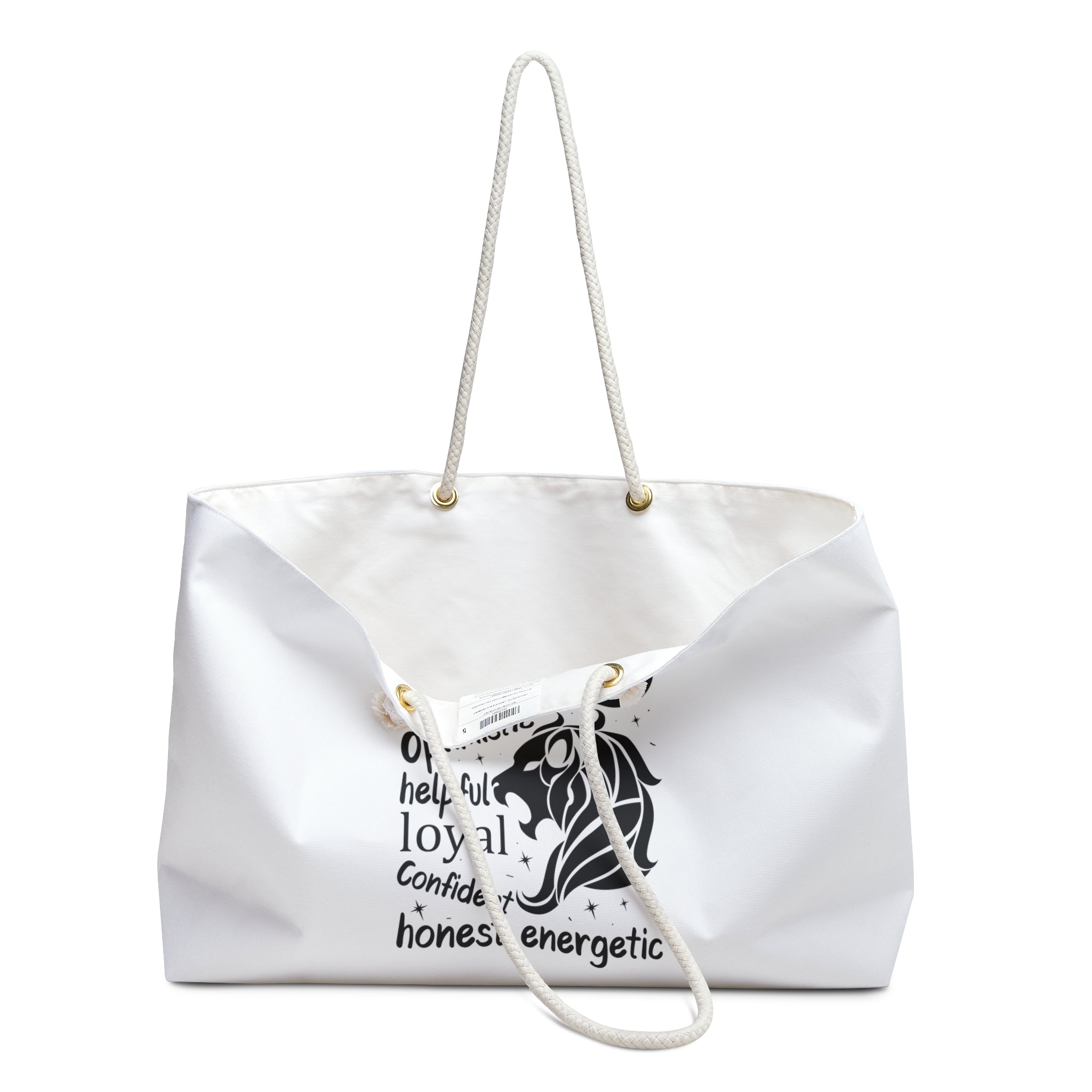 Our oversized Weekender Tote is perfect for your weekend at the beach or in town. The wide-mouthed, durable bag holds a generous amount of personal items and is easily held by its thick rope handles.